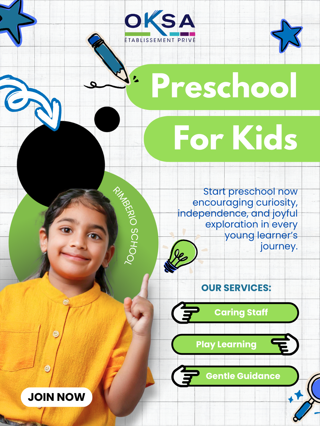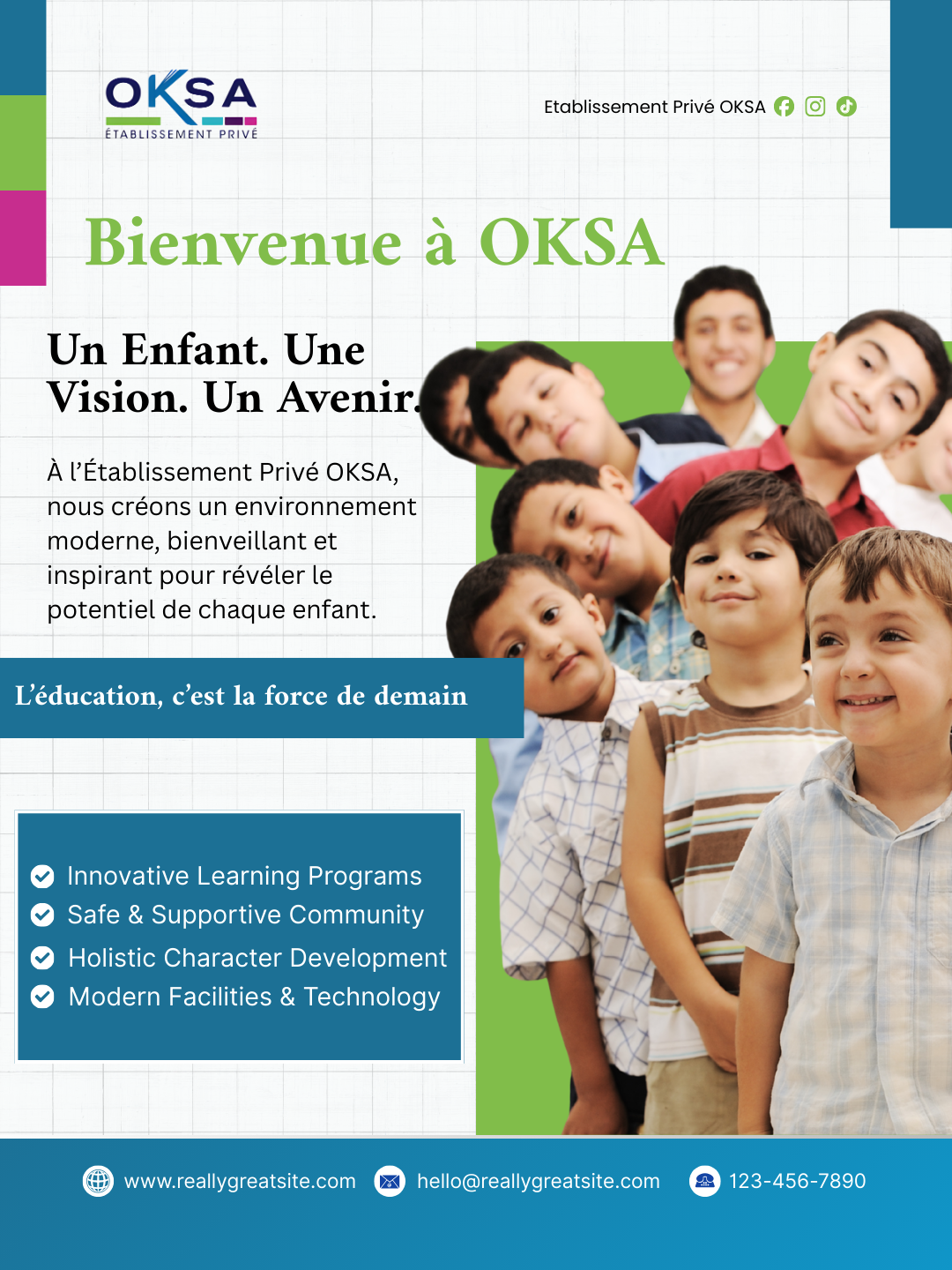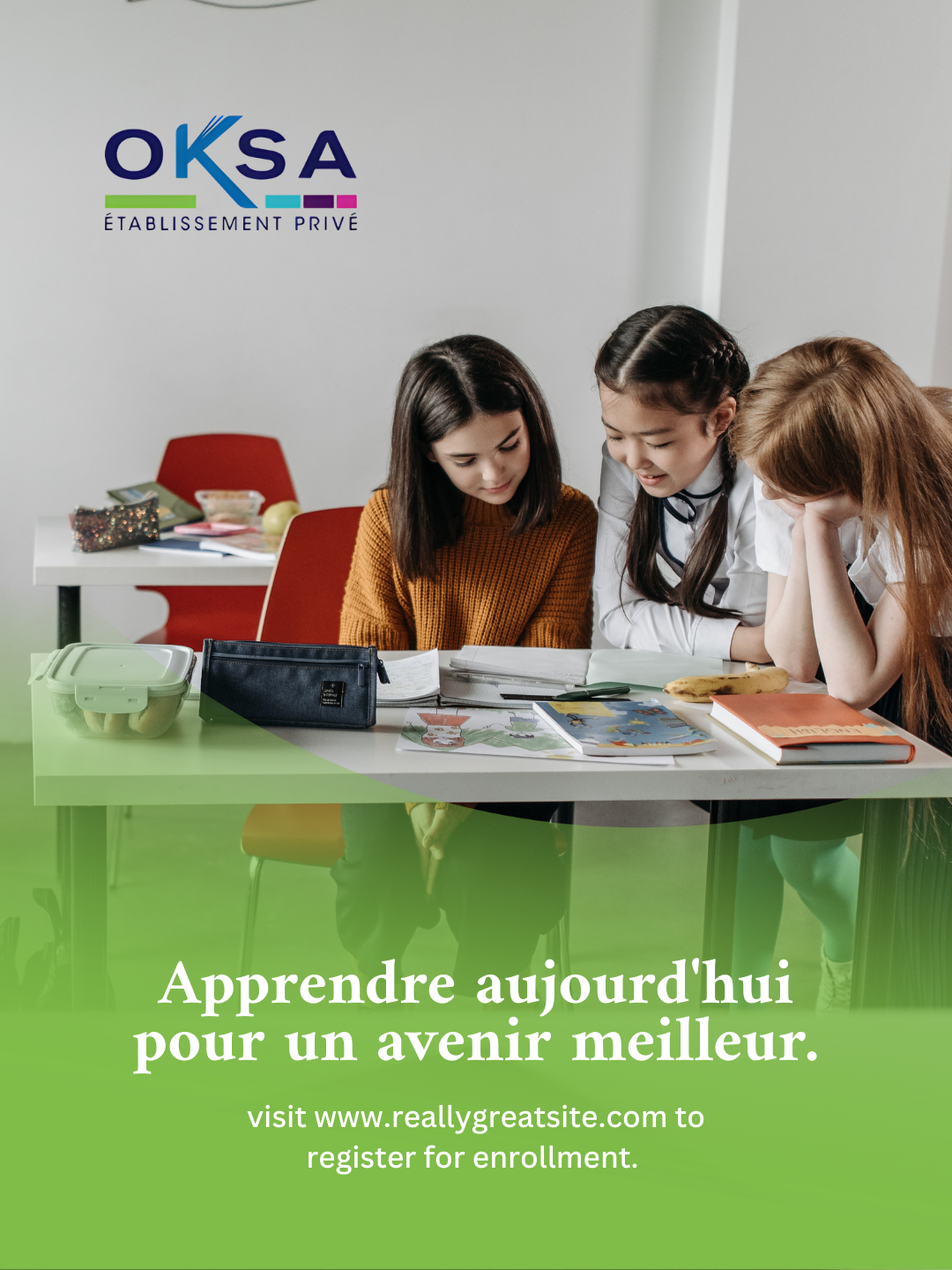À OKSA, nous mettons l’élève au centre d’un cadre moderne, stimulant et sécurisé — pour favoriser son épanouissement, sa créativité et sa réussite.